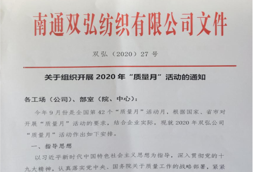 8月31日下午,双弘公司举行2020年“质量月”活动启动仪式,公司高中级管理人员和专业技术人员参加。