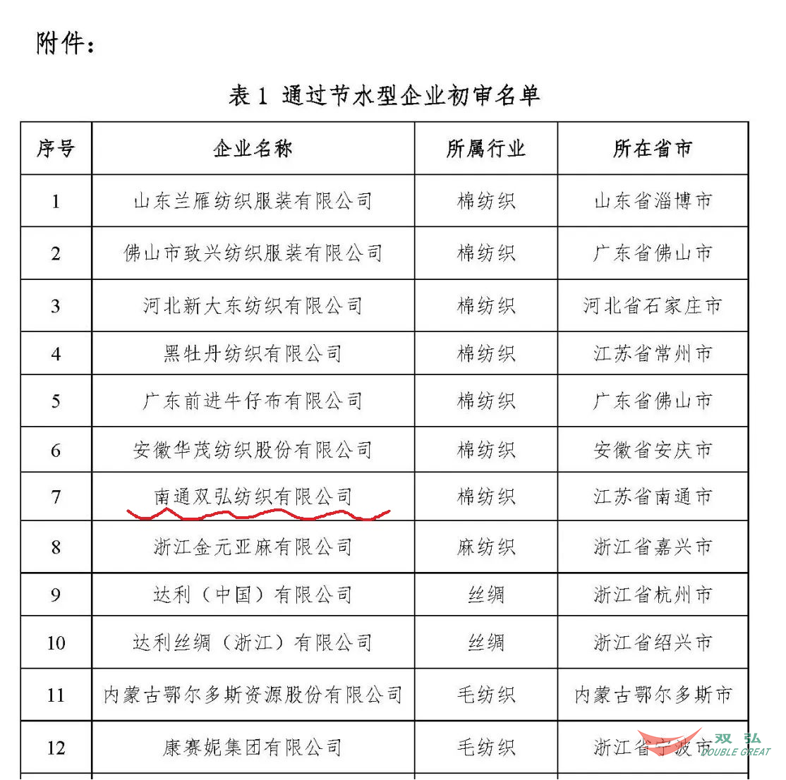 7月25日,从中国纺织工业联合会官网传来消息,南通双弘纺织有限公司荣获2022年纺织行业节水型企业,是南通地区唯一获此殊荣的棉纺企业。