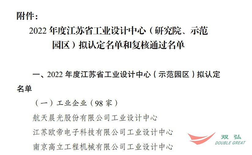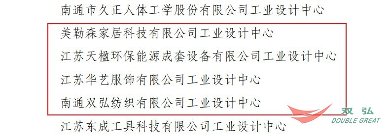近日,从江苏省工信厅获悉,南通双弘纺织有限公司工业设计中心荣获2022年度江苏省工业设计中心称号。